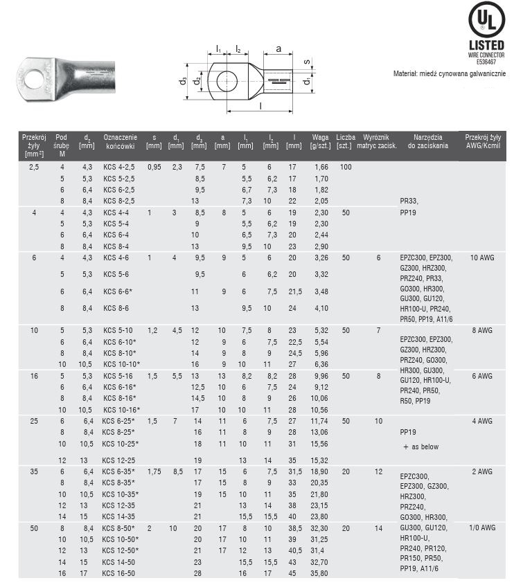 | Wykonanie | miedź cynowana galwanicznie |